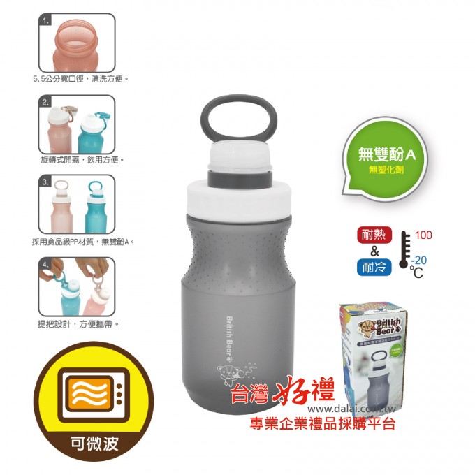 英國熊環保隨身瓶380ml-灰色