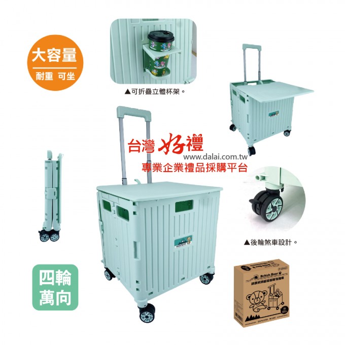 英國熊滑蓋摺疊購物推車65L(綠)