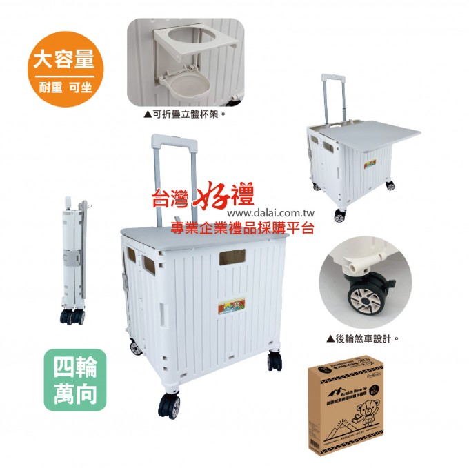 英國熊滑蓋摺疊購物推車65L(白)